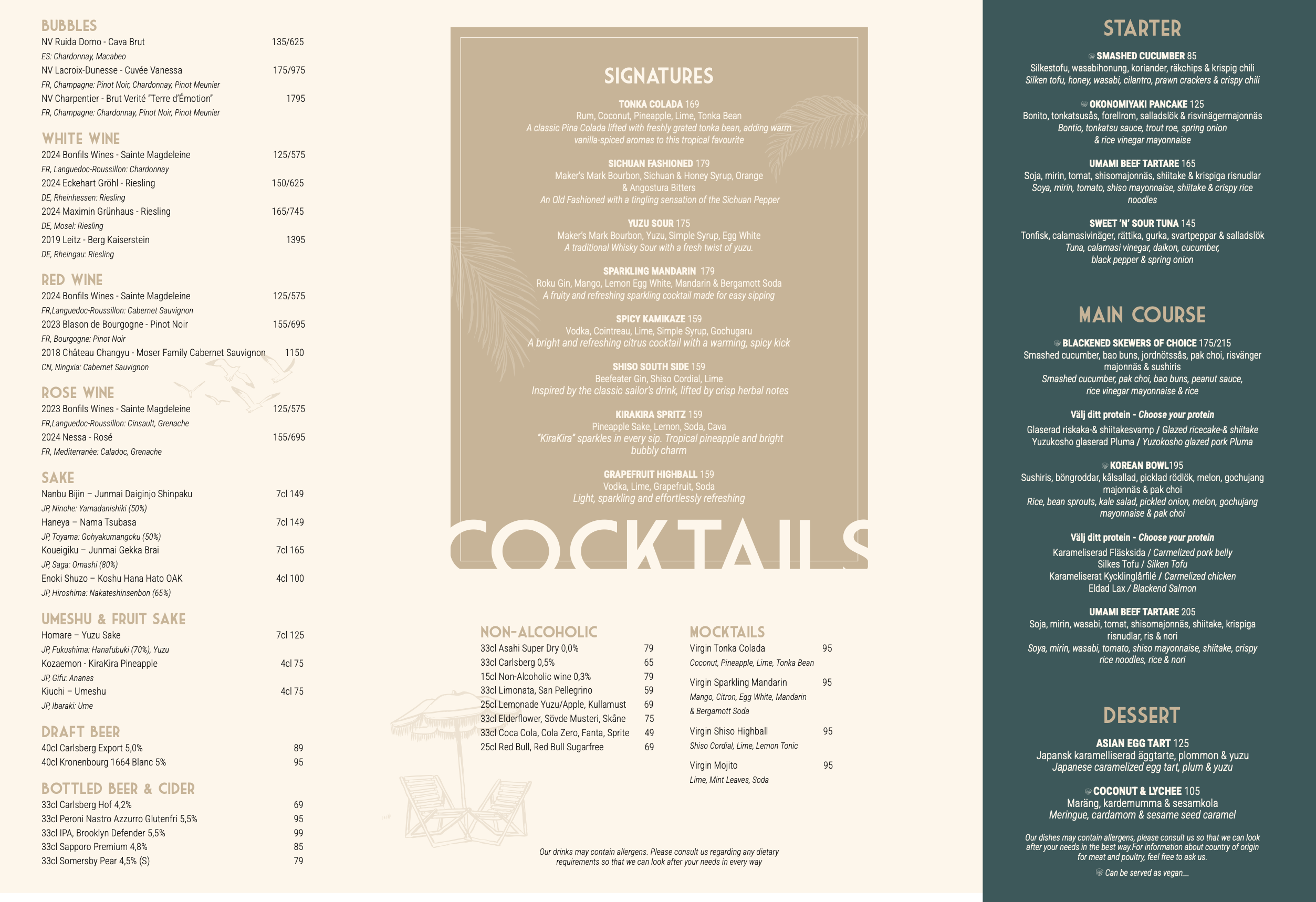 Restauranten byder på friske og smagfulde retter såsom asiatiske småretter og poké bowls – perfekte sammen med et glas bobler, en farverig cocktail eller en alkoholfri drink.